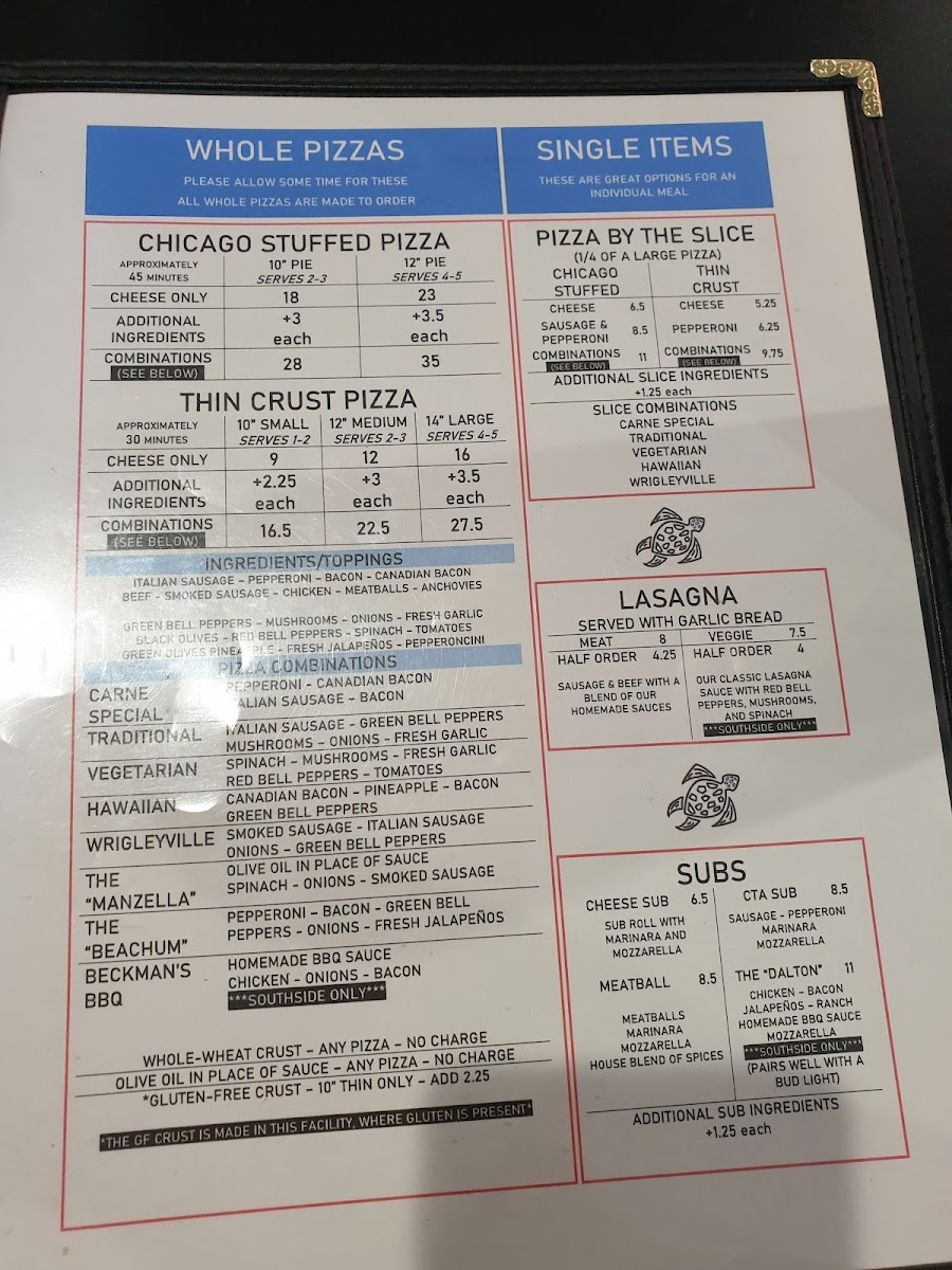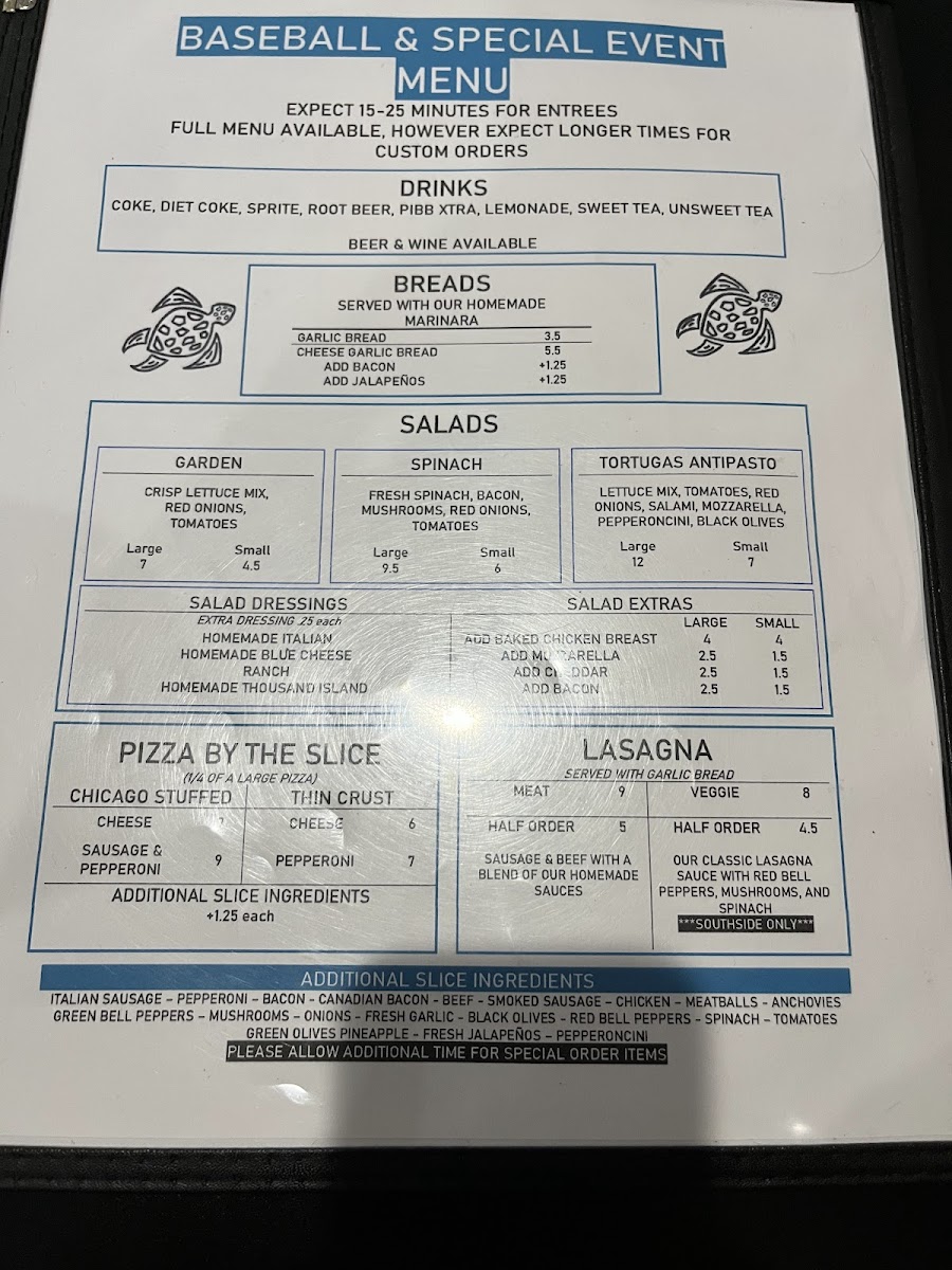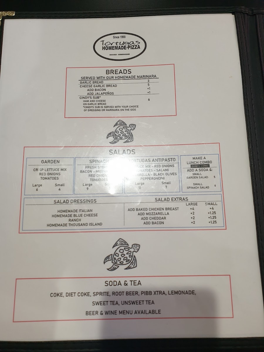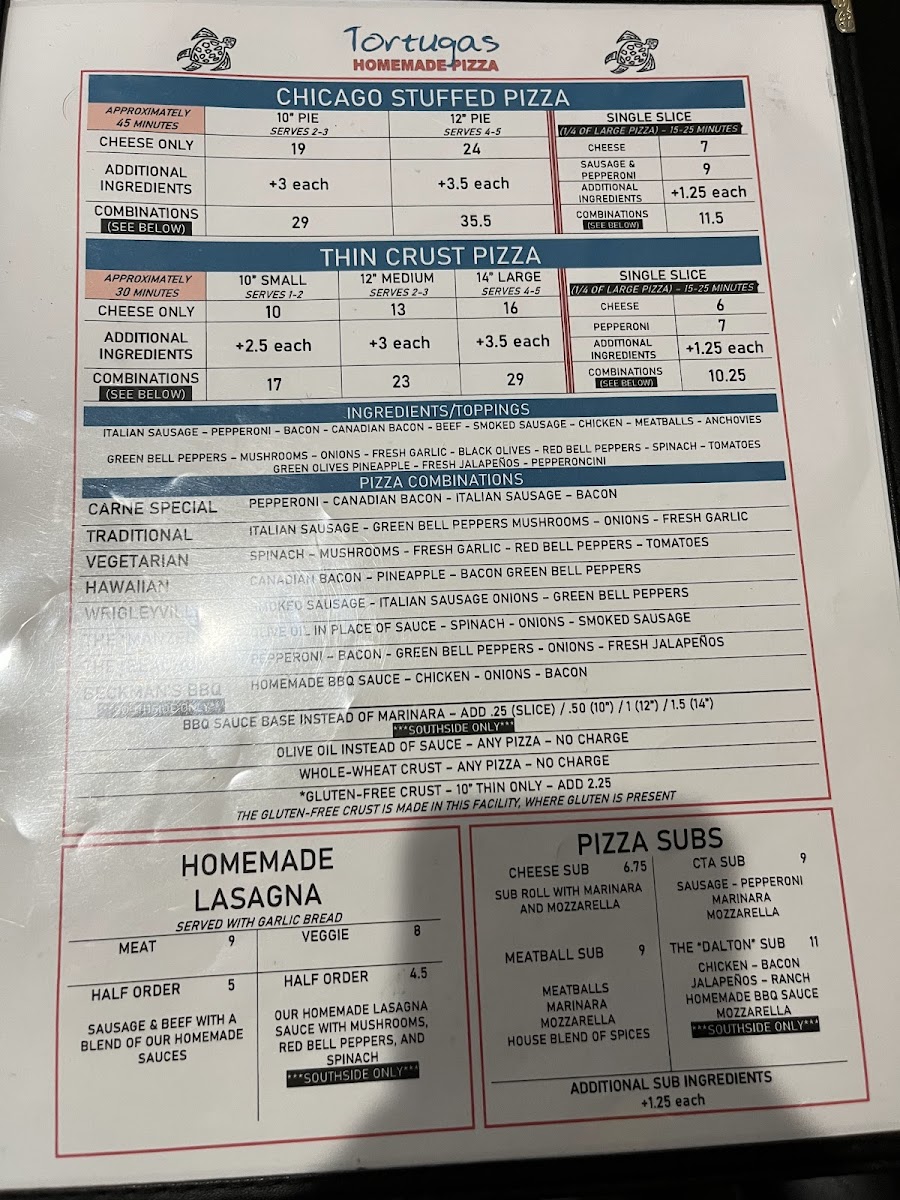 Tortugas Pizza Menu